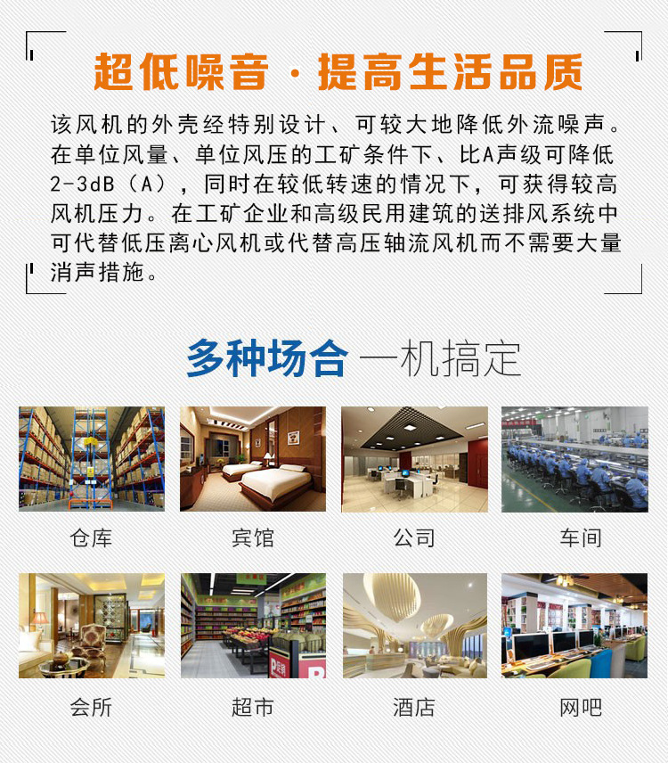 混流(斜流)風機,風壓系數(shù)比軸流風機高,流量系數(shù)比離心風機大,用在風壓和流量都“不大不小”的場合。它填補了軸流風機和離心風機之間的空白。同時具備安裝簡單方便的特點。